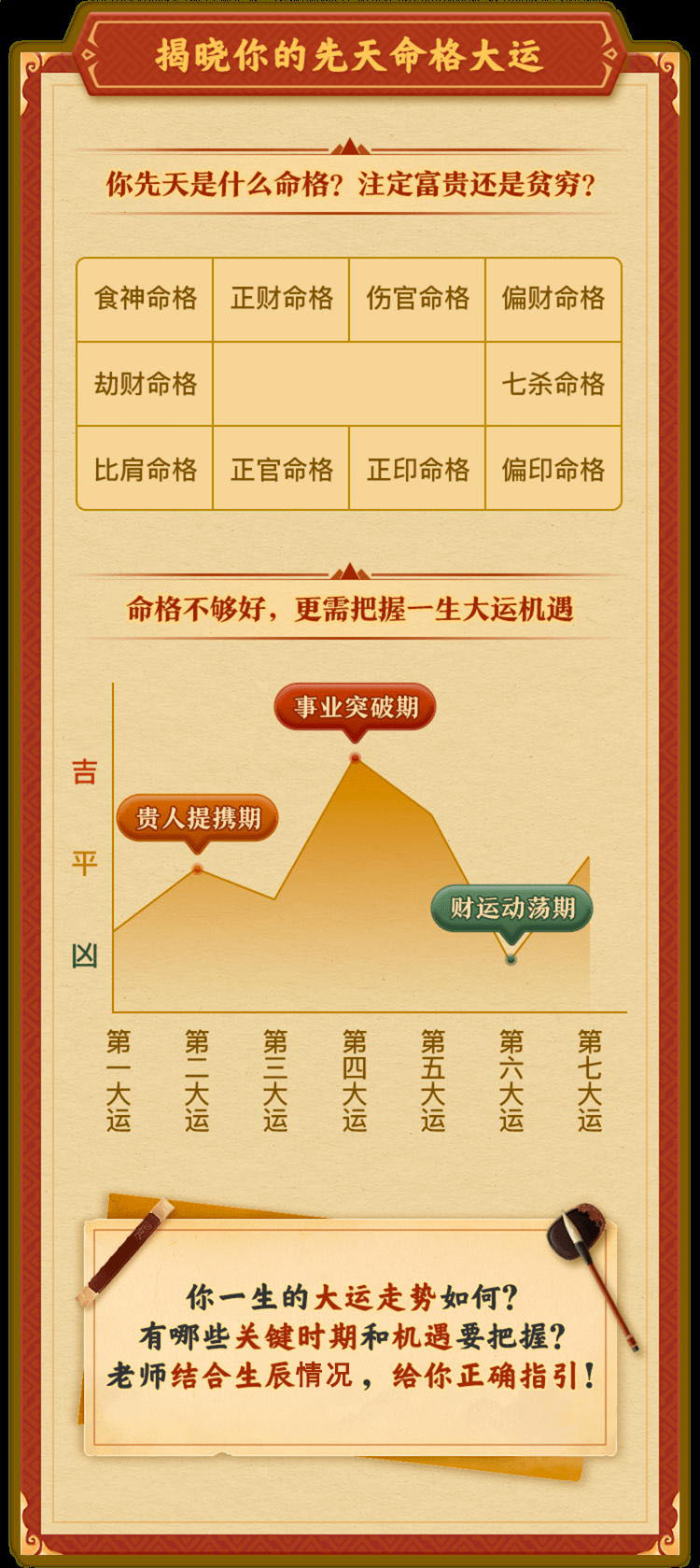 用户在申请好运咨询服务过程中,需要填写一些必要的个人信息,为了更好的为用户服务,请保证提供的这些个人信息的真实、准确、合法、有效并注意及时更新。若因填写的信息不完整或不准确,则可能无法使用本服务或在使用过程中受到限制。如因用户提供的个人资料不实或不准确,给用户自身造成任何性质的损失,均由用户自行承担。